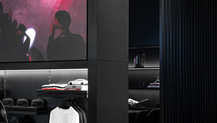 The Brabus boutique is located in Citywalk, Dubai. Brabus pride themselves on the “1 second wow-factor” design ethos. This has been visualized for the customer as they enter the showroom. Campaign areas were designed to be mobile & adaptive. Bespoke stands on a concealed roller system were designed & along with suspended artwork under tension. Materiality was limited to simple palette of under ten finishes in total. The boutique extents almost disappears, allowing for the product to stand out.
